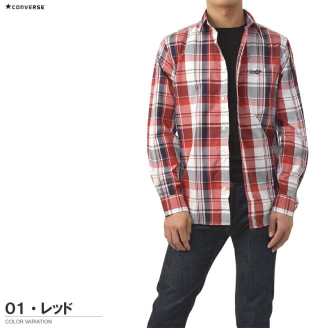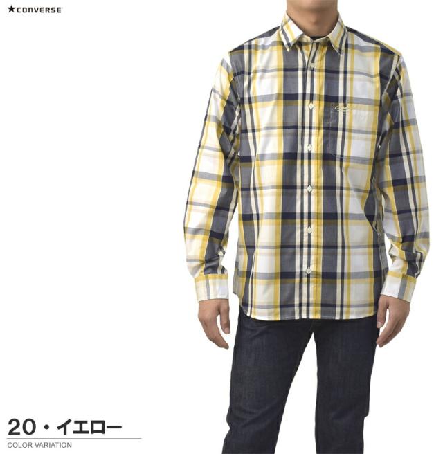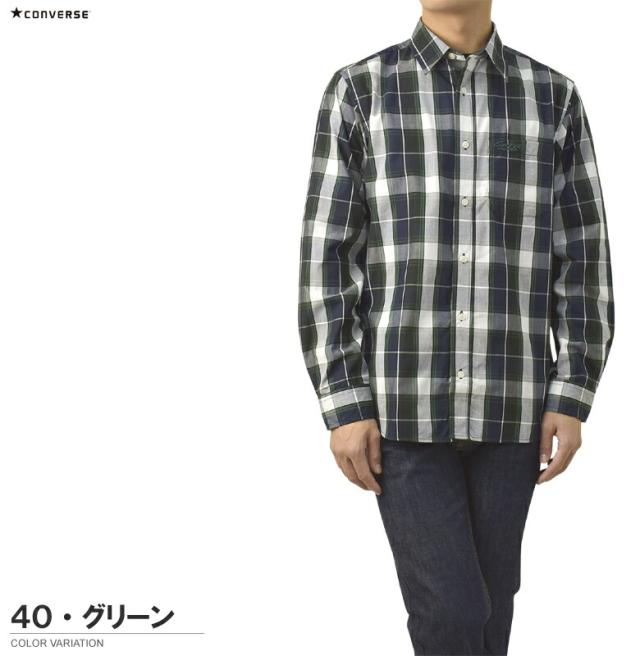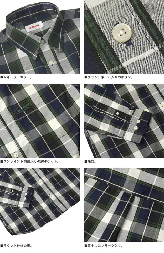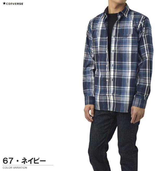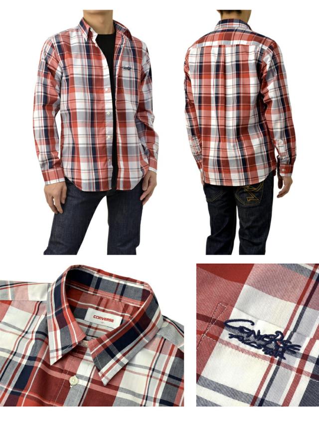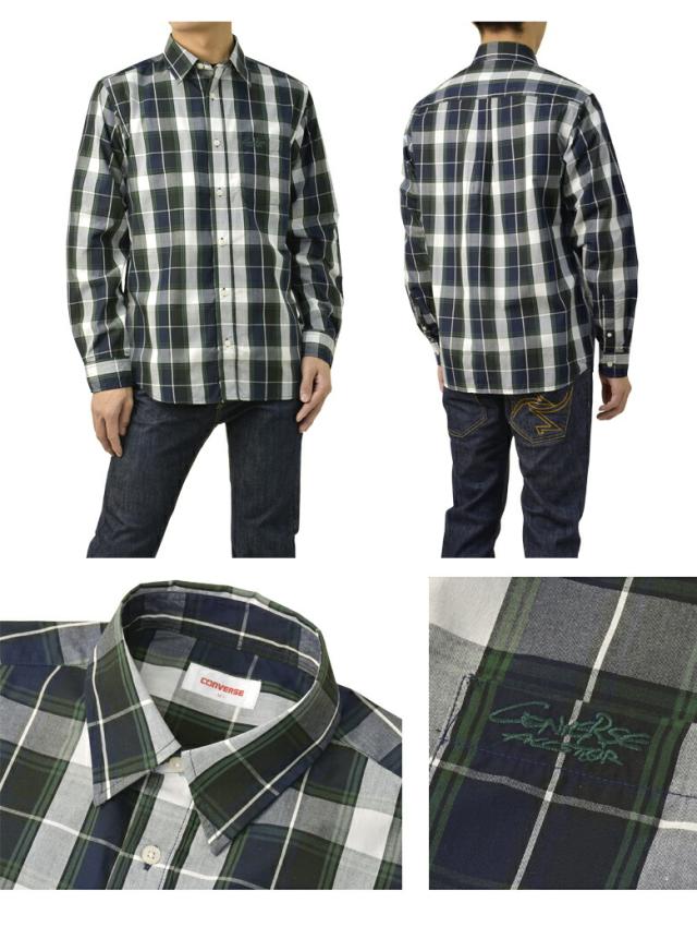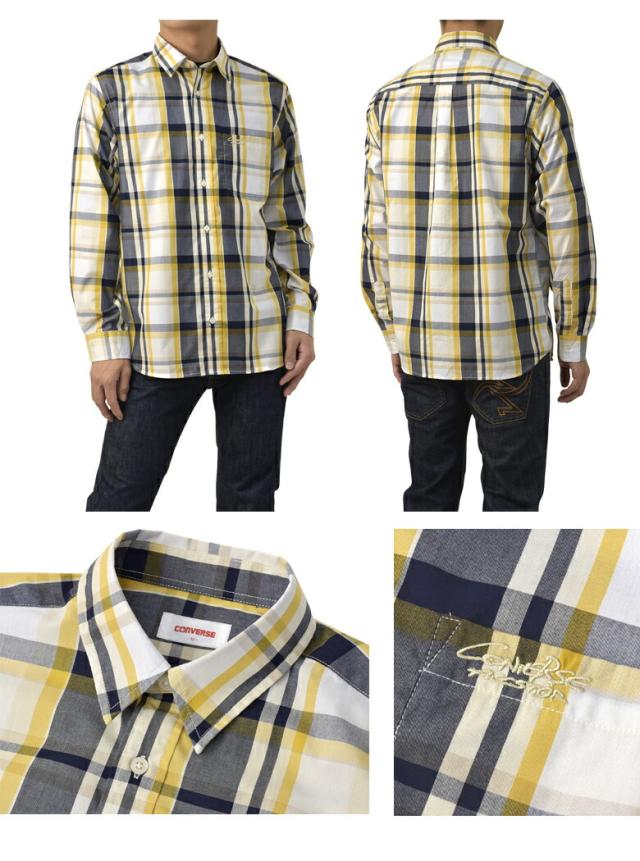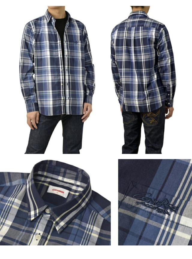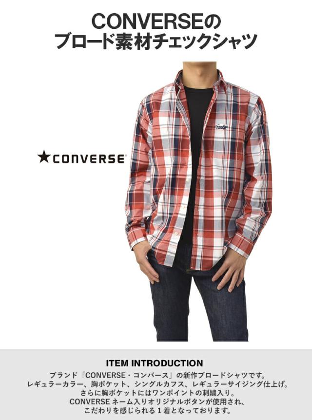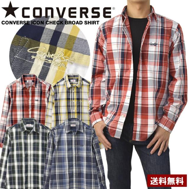シャツ 長袖 メンズ ブロードシャツ トップス CONVERSE コンバース レギュラーカラー チェック柄 刺繍 ワンポイント アメカジ カジュアル【C6Z】【パケ2】