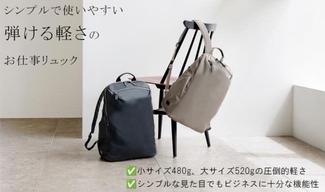 超軽量通勤リュックシリーズ「ルフィラ」 4つの外収納と充実の内装機能を備えながらも、480gの超軽量を実現しました。