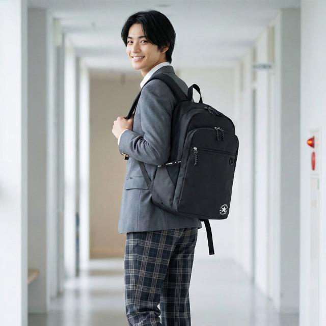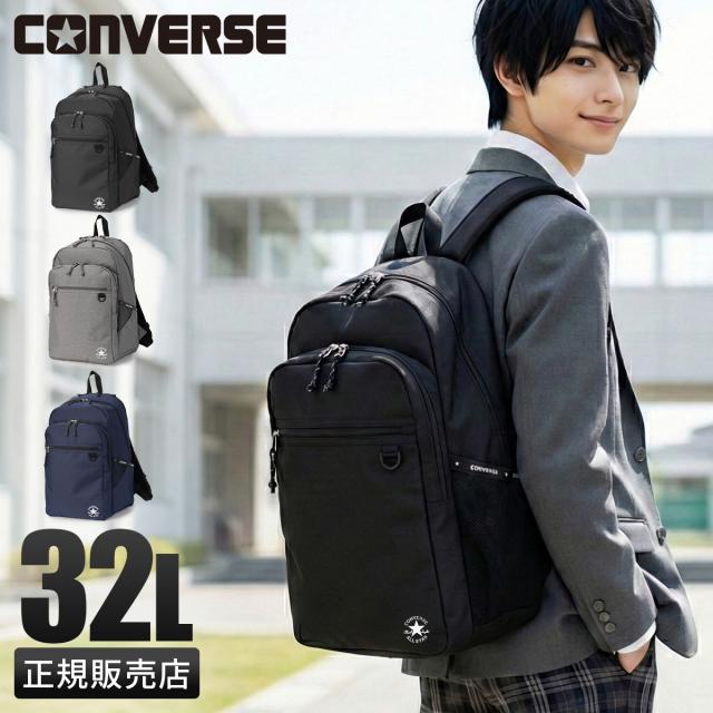 商品レビューで+5%|コンバース リュック 32L 大容量 軽量 撥水 男子 女子 中学生 高校生 黒 通学 部活 大きめ スクールバッグ デイパック バックパック A4 B4 Converse Slim Logo 20142