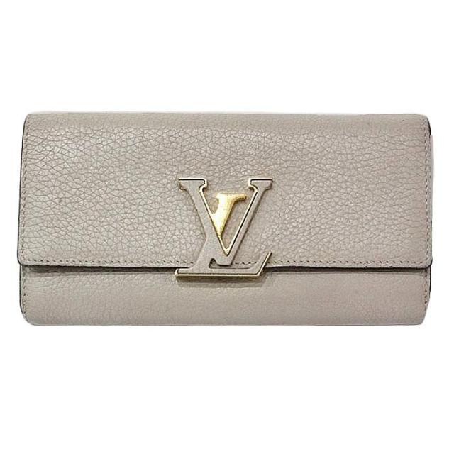 ルイ・ヴィトン ポルトフォイユ カプシーヌ M61249 トリヨンレザー ガレ ベージュ フラップ式長財布 ■内側にイニシャル打刻あり 中古 LOUIS VUITTON