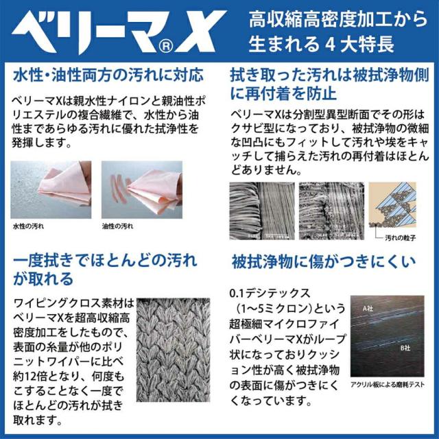 超極細繊維「ベリーマX」を使用し、メガネやスマホ画面を傷つけにくい仕様。