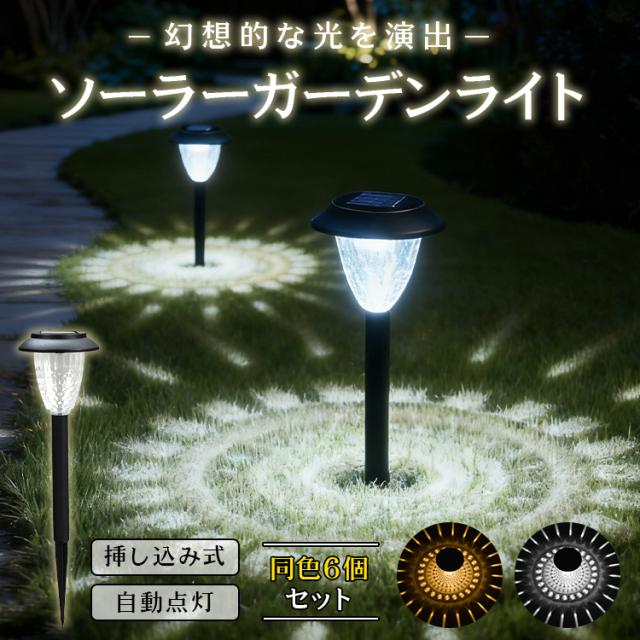 ガーデンライト 太陽光発電 ソーラー充電 屋外 防水 IPX4 挿し込み式 自動点灯 ソーラーライト おしゃれ 6個セット 庭 アプローチ 花壇 駐車場 足元照明 屋外照明 配線不要 幾何学模様 sl116
