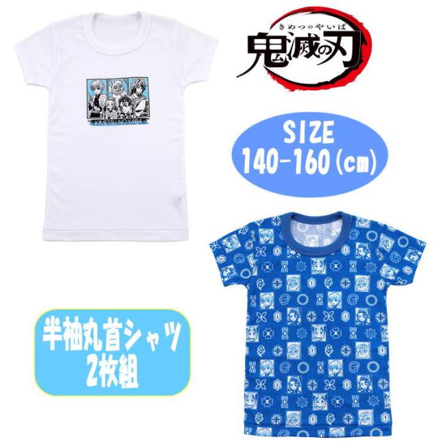 メール便送料無料 BANDAI 鬼滅の刃 きゃらふるインナー 丸首半袖院シャツ 2枚組 キャラクター BOY´S インナー 下着 肌着セット キッズ こども 男の子 2550156