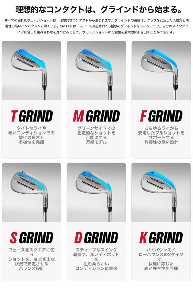 ショートゲームをもっと思い通りにすべてのゴルファーには、グリーンまわりでもっと輝ける力があります。SM11は、その力を引き出します。あらゆるプレースタイルに対応する多彩なグラインドと、スピンをより最適にコントロールする新開発のボーケイ・スピンシステム。SM11は思い描いたショットを打ちきるためのクラブであると同時に、ショートゲームへの自信をもたらします。