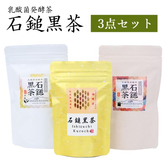 石鎚黒茶 スペシャル3点セット お試しセット ティーパック 茶葉 【メール便送料無料】 発酵熟成茶葉 乳酸菌醗酵茶 健康茶 醗酵茶 後発酵茶 二段発酵茶 愛媛県 西条市 Visee 石鎚黒茶茶葉とティーパックと四国霊場横峰寺で熟成させた発酵茶のセット