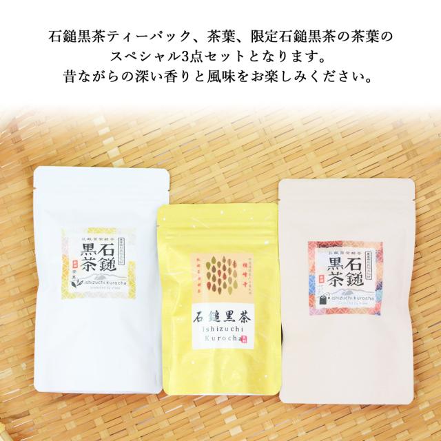 ※当商品は、石鎚黒茶ティーパックと、茶葉、及び四国霊場第60番札所「横峰寺(よこみねじ)」にて醗酵・熟成させた限定石鎚黒茶のスペシャル3点セットとなります。