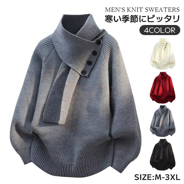最安挑戦 冬新作 送料無料 新作 ニット セーター スカーフ付き メンズ トップス 長袖 防風 防寒 ブルオーバ ニットパーカー ゆったり マフラー付き ニットセーター 秋 冬 厚手 保温 暖かい 柔らかい 通学 通勤 お兄系 30代 40代 50代
