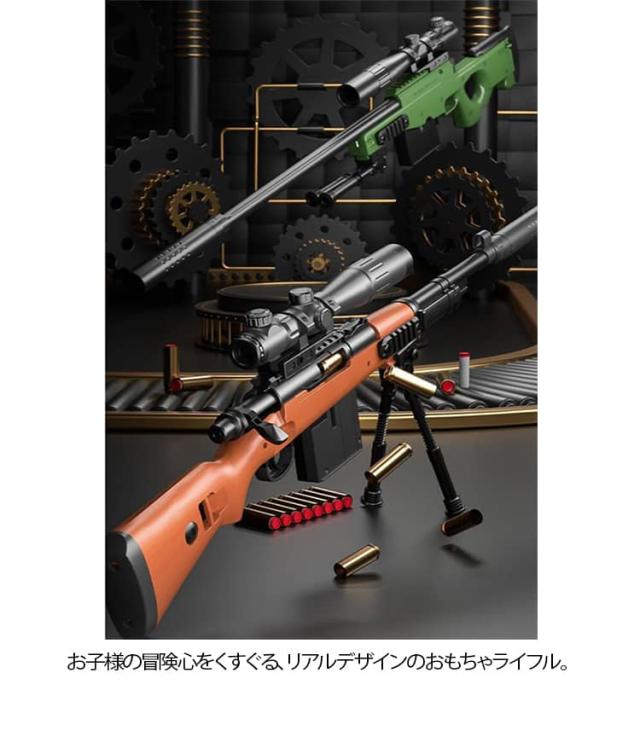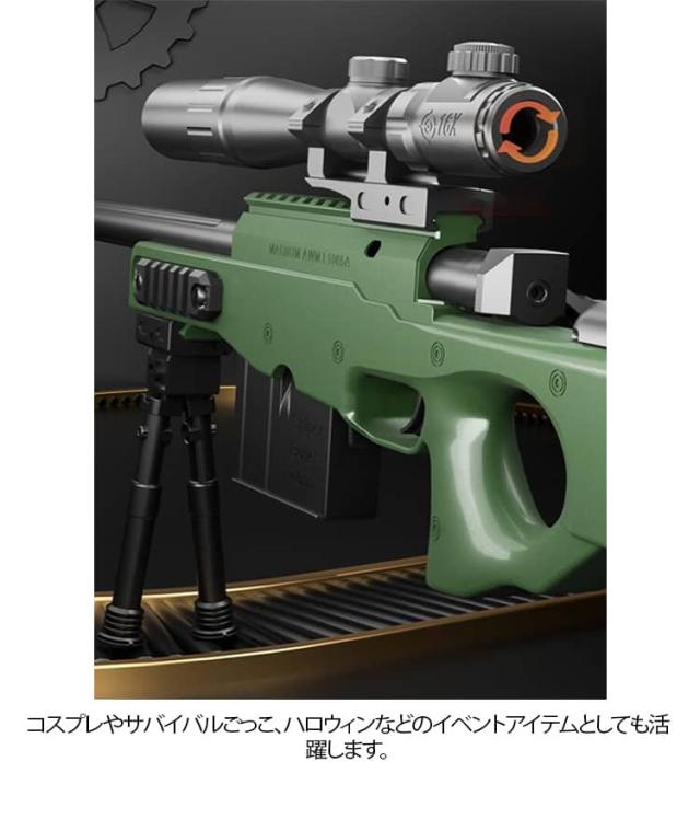 | 98K/AWM おもちゃ銃 お子様の冒険心をくすぐる、リアルデザインのおもちゃライフル。 安全なスポンジ弾を使用し、発射のたびに空の薬莢が排出される排莢式機能を搭載。 臨場感あふれるアクションで、ごっこ遊びの世界がさらに広がります。 屋内・屋外どちらでも使用可能なので、お庭や公園での遊びにも最適。 コスプレやサバイバルごっこ、ハロウィンなどのイベントアイテムとしても活躍します。 リアルさと安全性を両立した、遊び心いっぱいのおもちゃ銃です。 | |