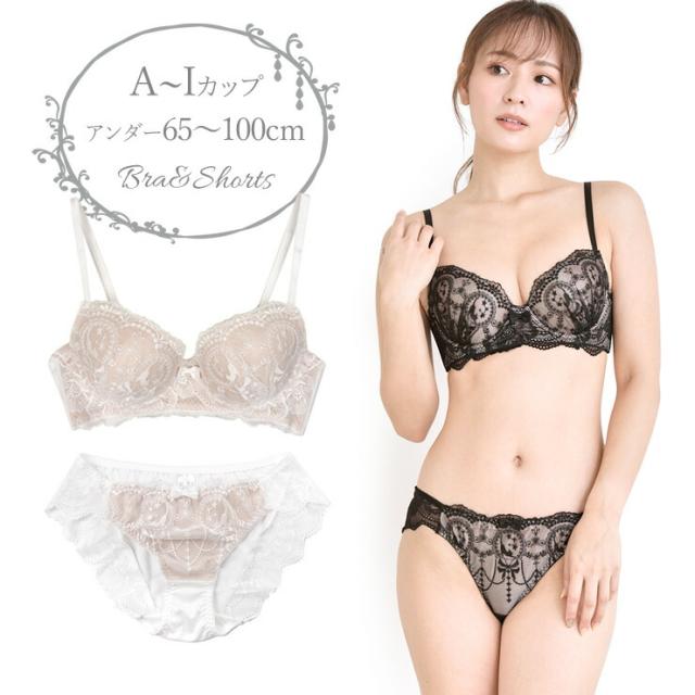 プリティキャット ケミカルレース ブラジャー ショーツ 上下セット 下着(J3679) ブラック ホワイト E F 65 70 75 80 85 90 95 100 大きいサイズあり bs2466