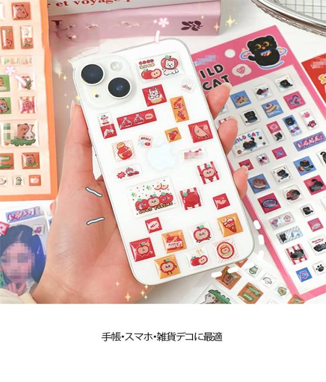 | ブロックシール 4枚入り ぷっくり立体感がかわいい カピバラやくま、猫などゆるくて癒されるデザイン 剥がれにくく耐久性◎ 手帳・スマホ・雑貨デコに最適 自由に貼って楽しめるDIYステッカー | |