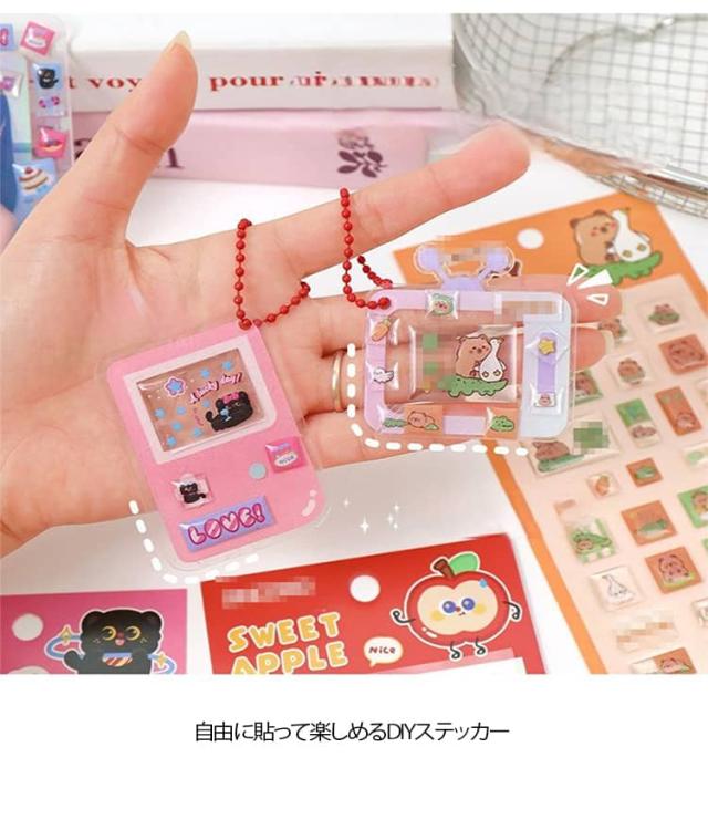 ブロックシール 4枚入り シール カピバラ エポキシ スマホケース かわいい ぷっくり立体感 ステッカー タイルシール 手帳 デコ DIY ブロックシール 文房具