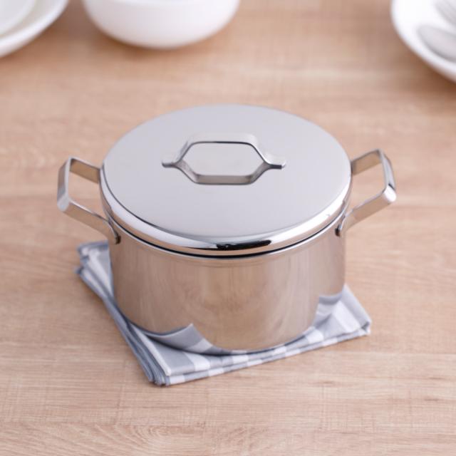 コンパクトで使い勝手の良いミニ両手鍋【14cm】です。少量の調理や下ごしらえ、ちょっとした温め直しなどに使いやすく、キッチンに常備しておきたいサイズ感です。