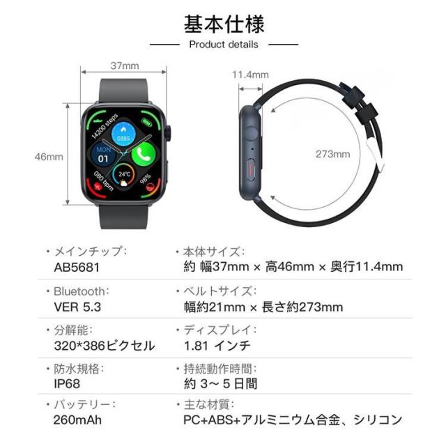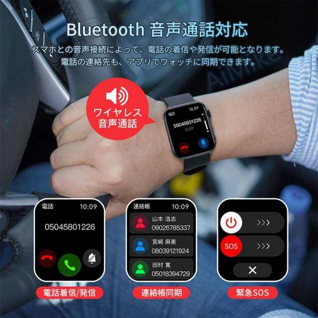 「 新生活応援」 スマートウォッチ 通話機能 日本製センサー 血圧 血中酸素 心拍数 血糖値 体温 防水 運動記録 着信通知 iphone android対応 操作簡単 健康管理