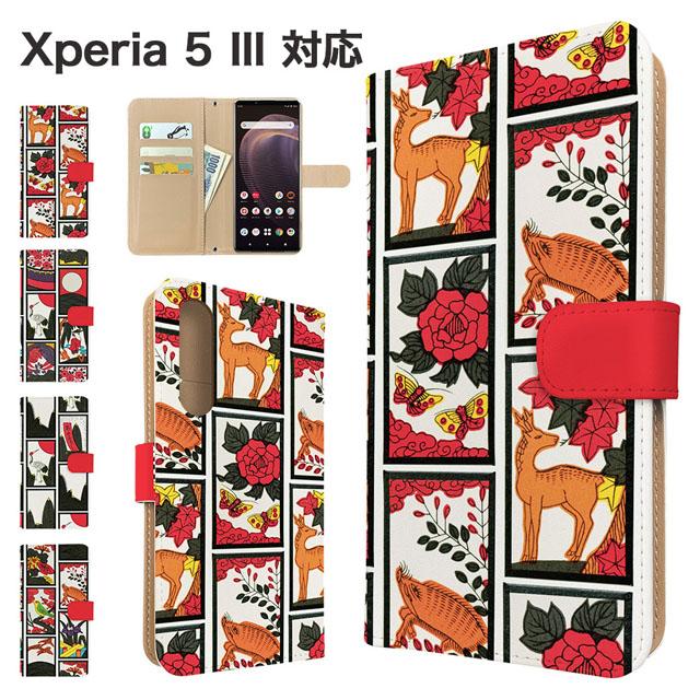 Xperia 5 III ケース 手帳型 SO-53B SOG05 A103SO XQ-BQ42 スマホケース カバー 花札 和柄 スマホカバー 携帯カバー エクスペリア5マーク3 ケース 花札柄