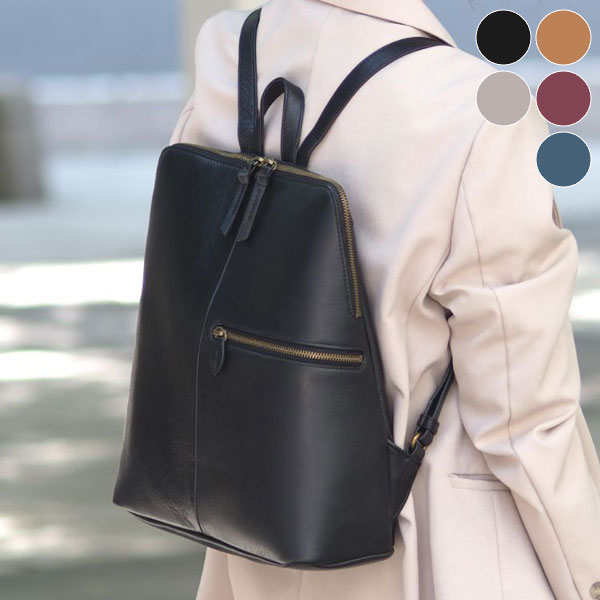 ブラック/キャメル/グレージュ/ピーコックブルー/ボルドー/A4書類やノートPCがきちんと収まる山羊革リュック