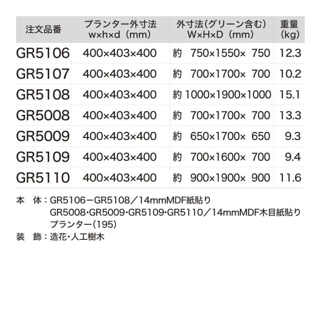 ※グリーンは造花の為、屋内設置でも直射日光や高温により、変色劣化する場合がございます。