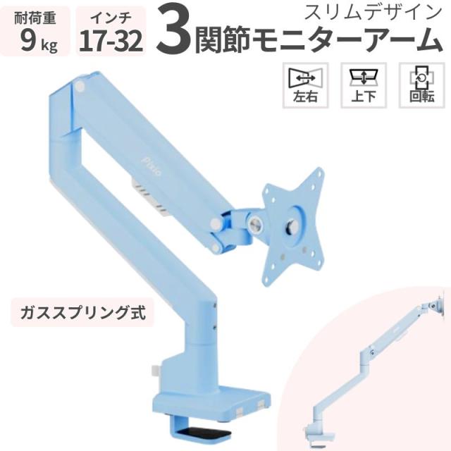 ガススプリング式 モニターアーム シングル 17〜32インチ対応 耐荷重9kg VESA対応 デスク用 パステルブルー PSW1S PSW1SBL新品