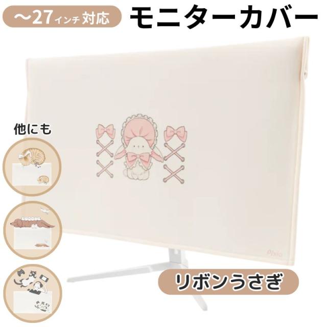 モニターカバー 27インチ対応 リボンウサギ デスク装飾 保護カバー Pixio 寝田ルネ イラスト PXMC003新品