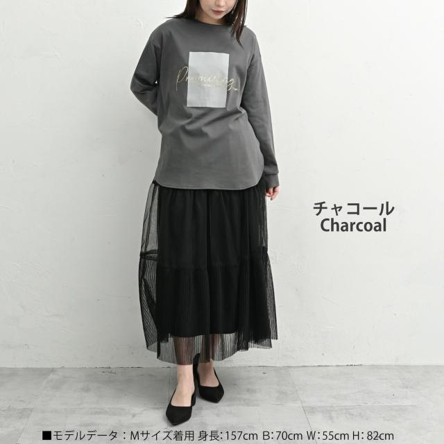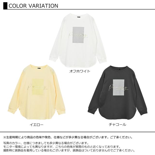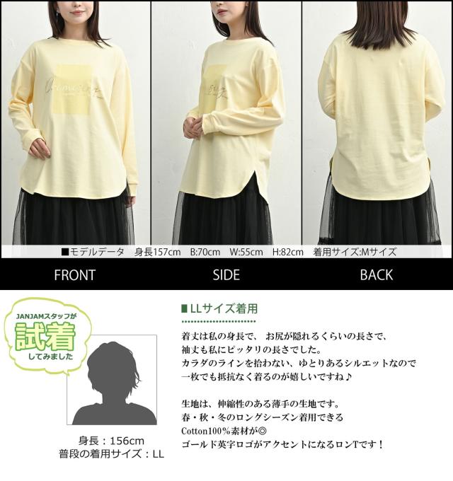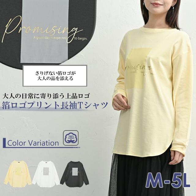 coe-saw-tp0673 【メール便対応】大人の日常に寄り添う箔ロゴプリントTシャツ。 大きいサイズ レディース 長袖トップス 長袖Tシャツ 長袖カットソー コットンTシャツ カジュアルTシャツ オトナTシャツ 箔プリントロゴTシャツ 箔押しロゴプリント ゴールドプリント ゴールド英字ロゴ ロゴT Uネック クルーネック ラウンドネック 丸首 長袖 ロングスリーブ ラウンドヘム 春服 秋服 冬服 春物 秋物 冬物 春トップス 秋トップス 冬トップス 春Tシャツ 夏Tシャツ 秋Tシャツ 秋冬トップス 春秋トップス コットン100% cotton100 伸びる生地 ストレッチ 伸縮 裏地なし 長め丈 お尻が隠れる着丈 お尻すっぽり丈 チュニック丈 ゆったり 大きめ 大人 カジュアル フェミニン ナチュラル レイヤード 重ね着 大人可愛い きれいめ かわいい かっこいい 着こなし おしゃれ 定番 春コーデ 秋コーデ 冬コーデ ファッション 大きめ 女性 婦人用 ミセス 30代 40代 50代 2026 春新作 春 秋 冬 白 灰色 黄色 オフホワイト チャコール グレー イエロー M LL 3L 4L 5L 9号 13号 15号 17号 19号 coe-saw-tp0673