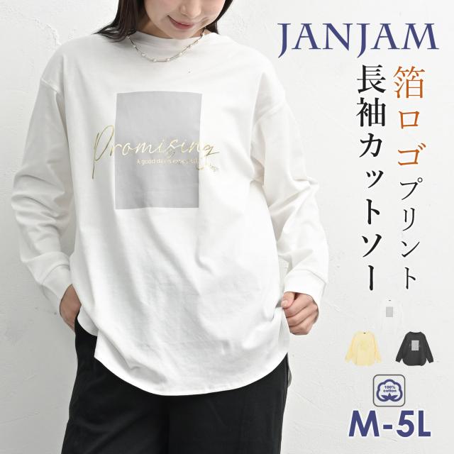 大きいサイズ レディース 箔プリントロゴTシャツ メール便対応 長袖 ロゴプリント ラウンドヘム トップス cotton100 M/LL/3L/4L/5L ゆったりサイズ ぽっちゃり女子 プラスサイズ