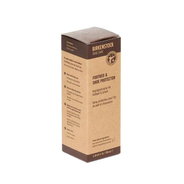 使用方法:清浄後、アッパー素材を濡らさない程度に、BIRKENSTOCKフットベッド&シュープロテクターを約20−30cmの距離から均一にスプレーします。スプレーは必ずしも均等に噴霧しませんので、表面に液滴が形成された場合は、すぐにBIRKENSTOCK塗布用ブラシまたはBIRKENSTOCKポリッシングクロスで液滴を均一に広げ、しばらく乾燥させます。