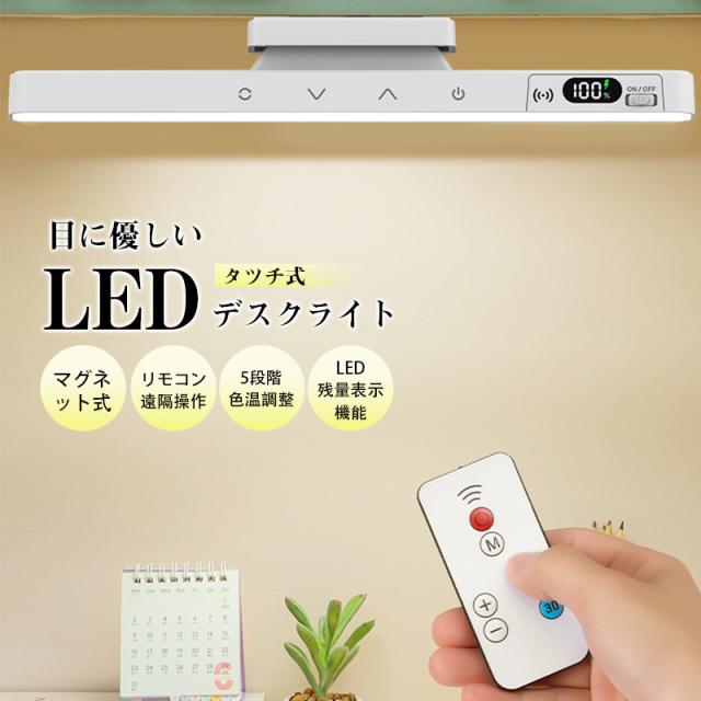 【キーワード】デスクライト ledライト 卓上ライト マグネット式 リモコン付き タツチ式 充電式 電気スタンド 勉強 調光調色 角度調整 寝室 読書灯 照明
