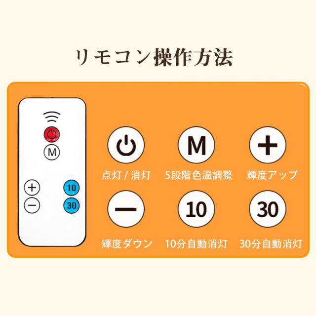 【10/30分リモコンタイマー】:10分または30分の自動消灯タイマー機能を搭載。読書しながら眠る場合など、省エネと安全性を両立します。