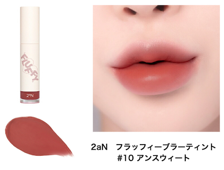 ポイント10倍 2aN フラッフィーブラーティント【#10 アンスウィート 】ミューテッドローズ 口紅 リップ リップグロス 韓国 コスメ ふわふわテクスチャー