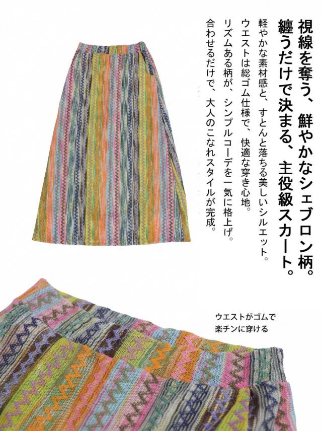 pa-03915 スカート ボトムス ロング ストライプ 配色 マルチカラー ウエストゴム Aライン 大きいサイズ ルーズ リラックス イージー ワイド らくちん ナチュラル カジュアル モード