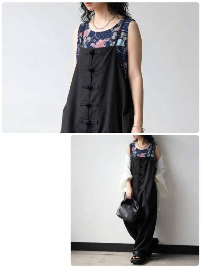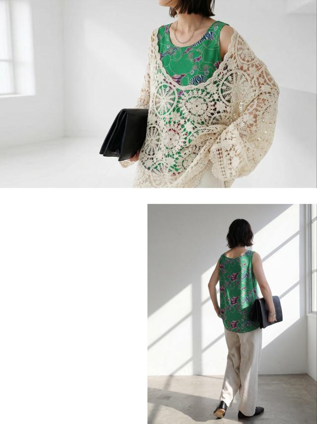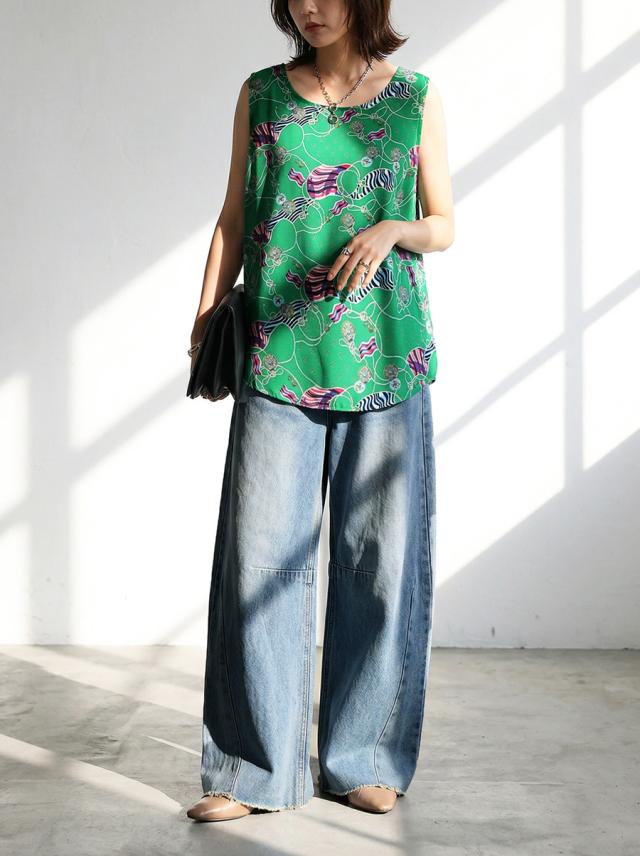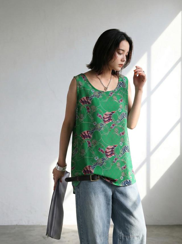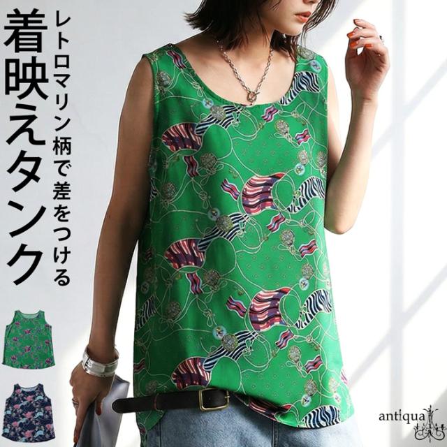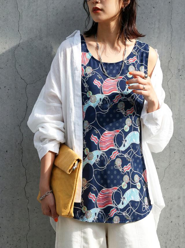 pa-03927 トップス タンク 柄タンク 総柄 レトロ ゆったり 体型カバー レイヤード 大人 カジュアル モード きれいめ 高見え 着回し リラックス ルーズ シルエット 涼しい 軽やか