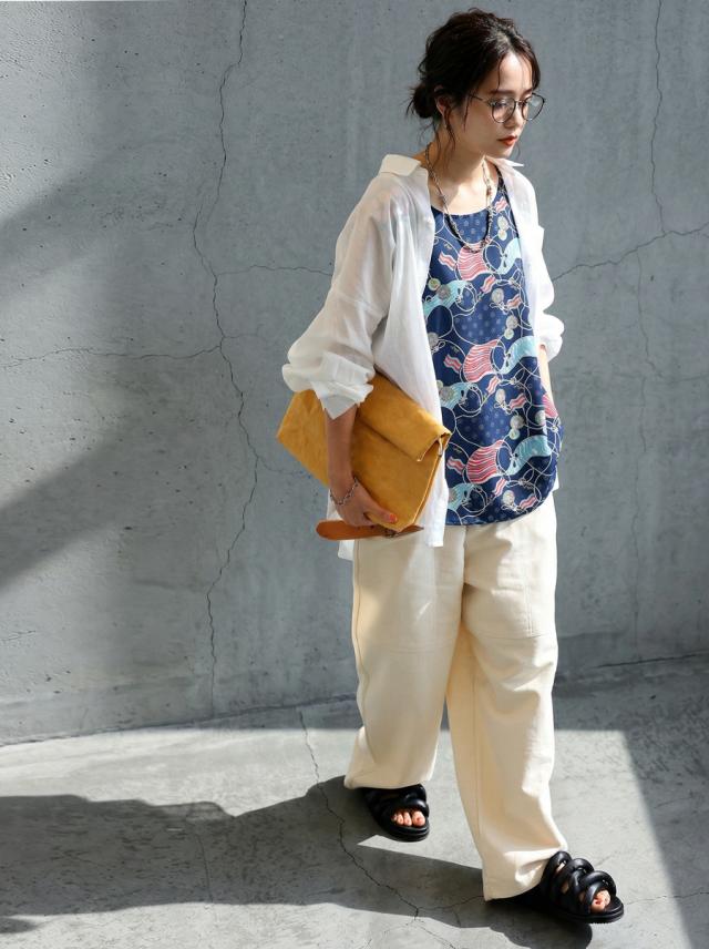 柄の存在感がありながらも派手すぎず、さらりとした軽やかな素材感でデイリーに取り入れやすい一枚です。