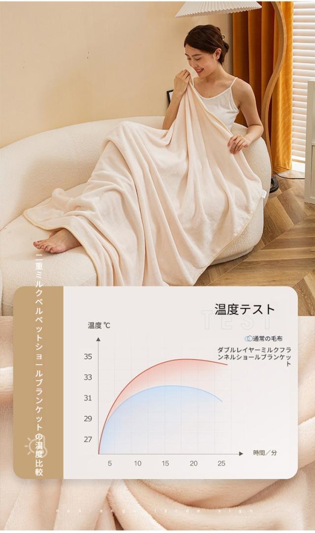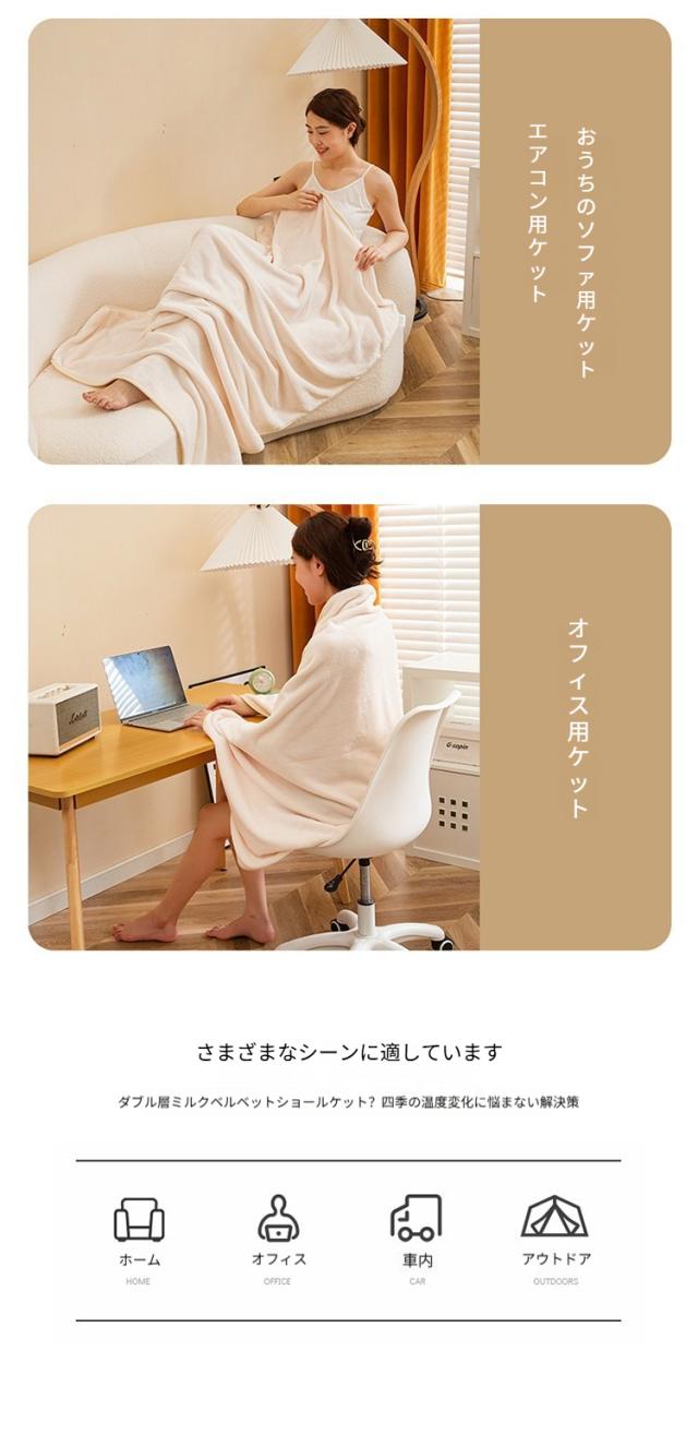 ブランケット、ショール、ミルクベルベット、あったか毛布、ソファ用、ベッド用、膝掛け、コンパクト収納、軽量、冬用、防寒