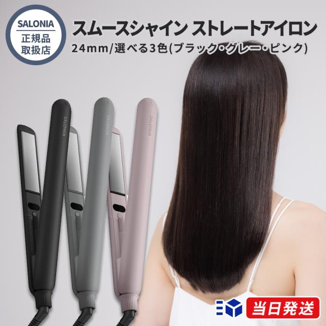 【正規品取扱店】SALONIA サロニア スムースシャイン ストレートアイロン 24mm ブラック グレー ピンク 選べる3色 ヘアアイロン シルクプレート ダメージレス ストレート