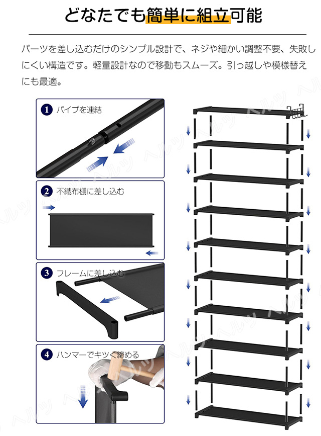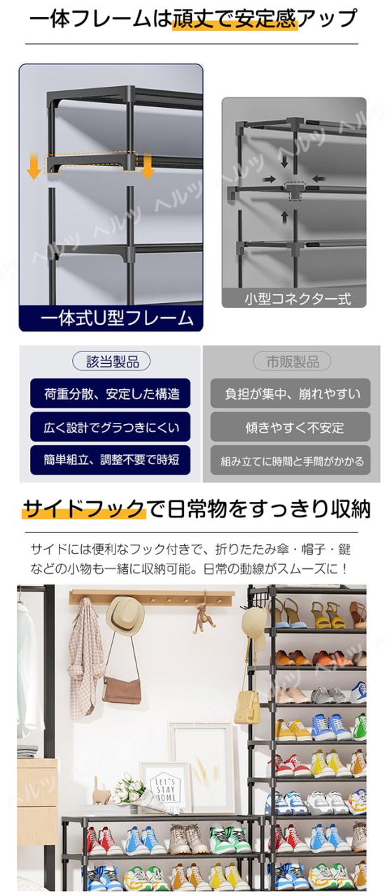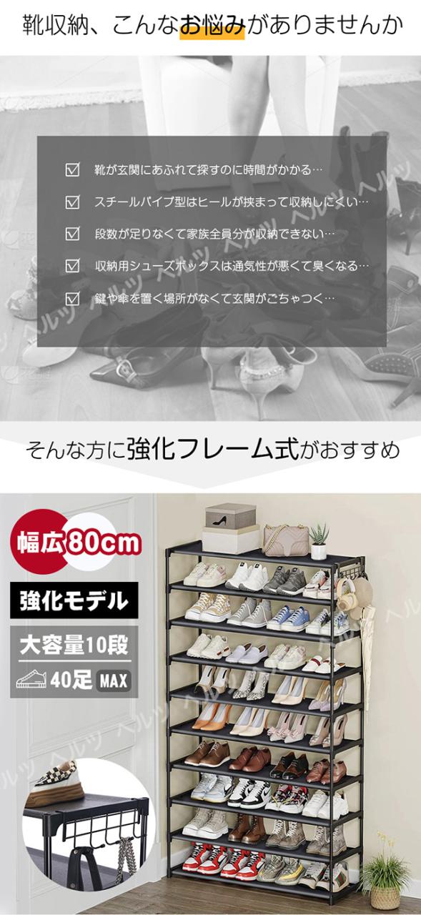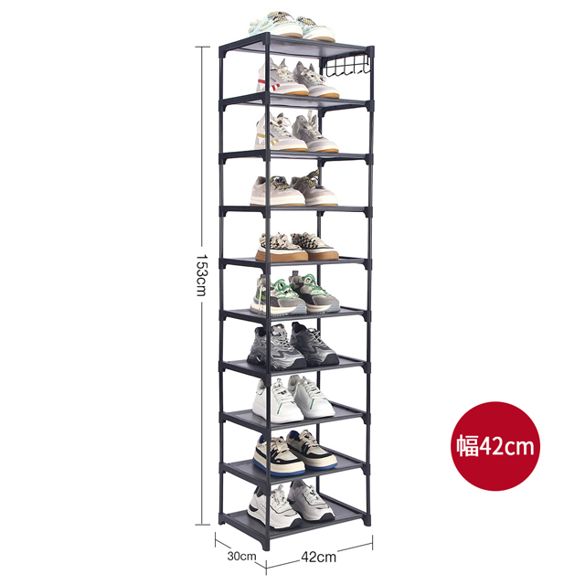 「即納」「10段式幅42/80cm」シューズラック スリム 安定感アップ フック付き 多層収納 従来品より補強された シューズラック 大容量 靴箱 下駄箱 組立簡単 シューズボックス 靴収納ラック おしゃれ 母の日 敬老の日 プレゼント