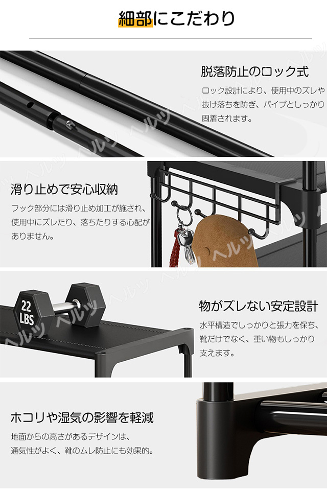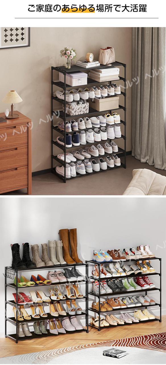 シューズラックとして使えるほか、本、雑誌、子供の玩具、服などの収納ラックとしても使え、同時に玄関、寝室、キッチン、バスルームなどの場所に置くことができ、部屋をすっきり見せます。
