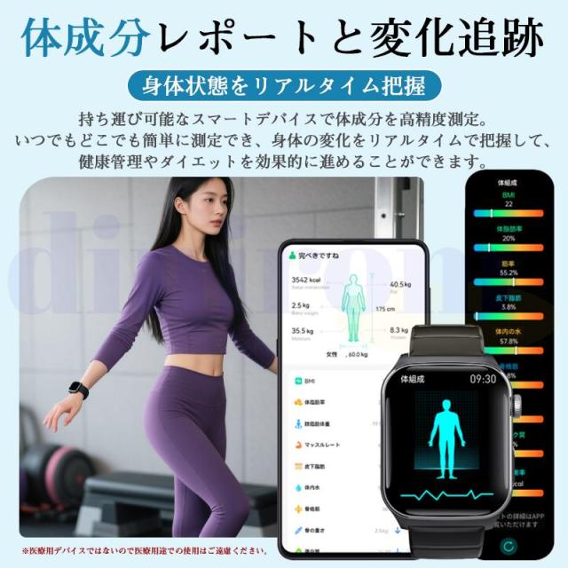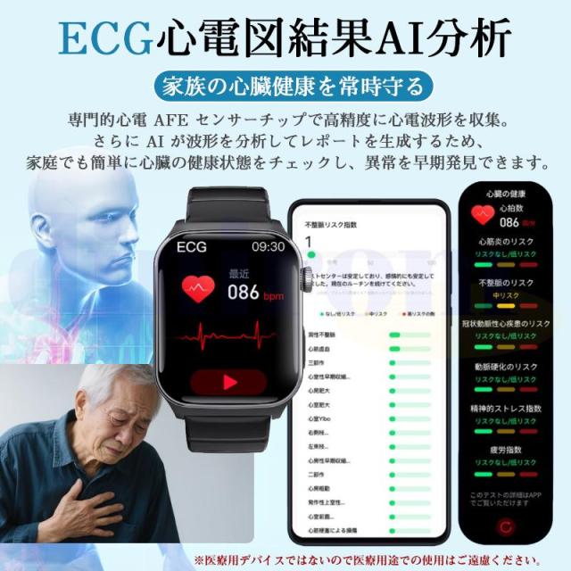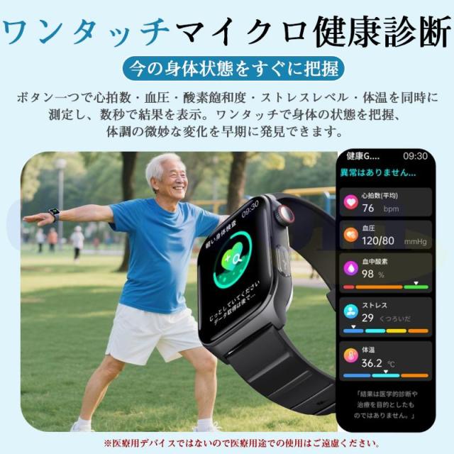 2025最新 スマートウォッチ 医療レベル血糖値評価「血液成分 体組成分析」通話機能 ECG心電図 血中脂質 尿酸 血圧 心拍数 血中酸素 体温 日本製センサー 父の日