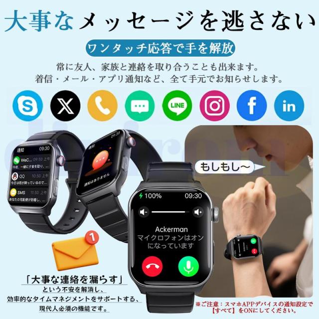 ●メッセージ通知機能:電話、着信、メッセージ、Lineなど全部対応