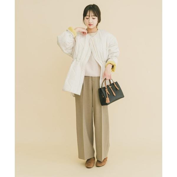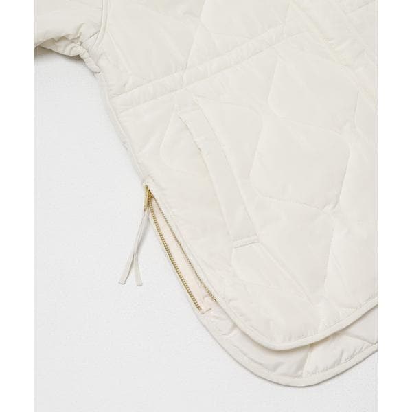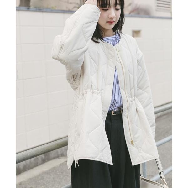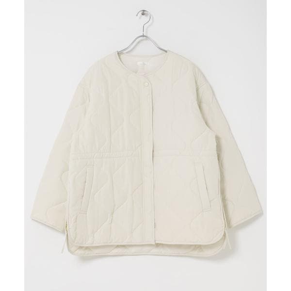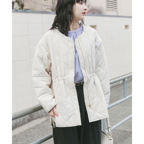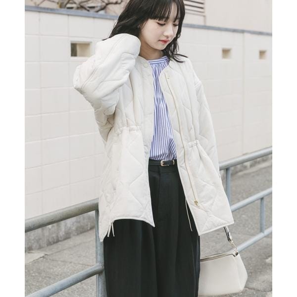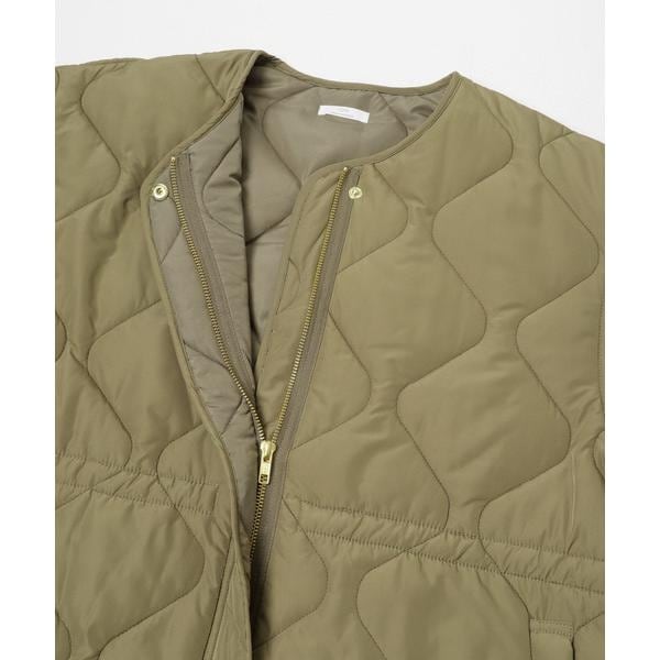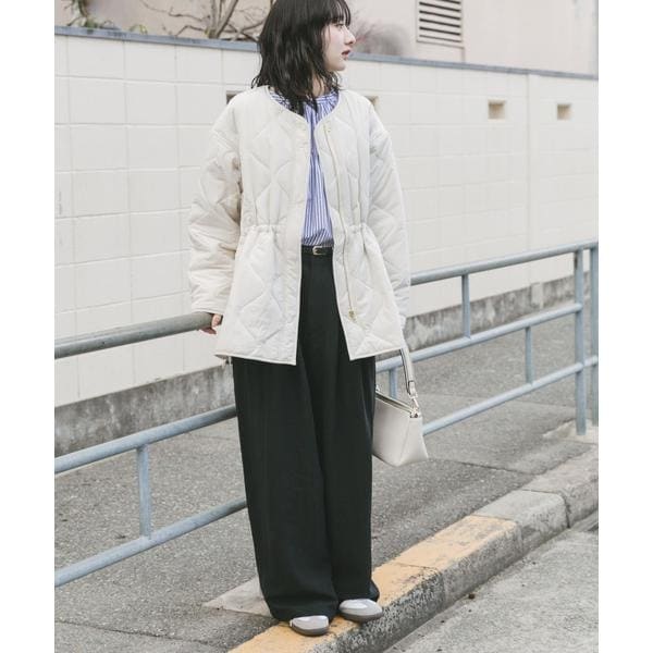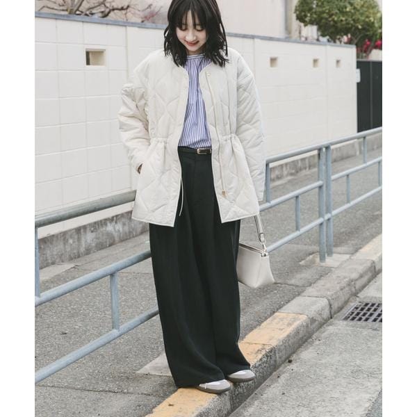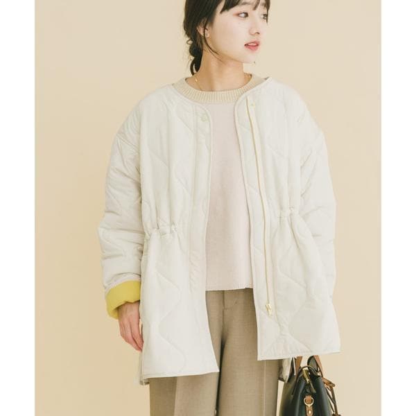 次の季節に向けて手に取りたい、軽やかな中綿ブルゾン。 程よい厚みの中綿が、肌寒い春先にも暖かさをキープしながら、見た目はすっきりと軽快な印象に仕上げます。 ノーカラー仕様で、パーカーやハイネックとも好相性。 首元のレイヤードを邪魔せず、着こなしの幅を広げてくれます。 キルティングラインの立体感とサイドオープンの抜け感が、横顔や後ろ姿まで印象的に。 ファスナーとドロストでシルエット調整ができ、その日の気分に合わせた着こなしが楽しめる一着です。