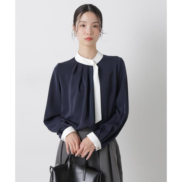 ナノユニバース(NANO universe)/フロントタックバイカラーボータイブラウス