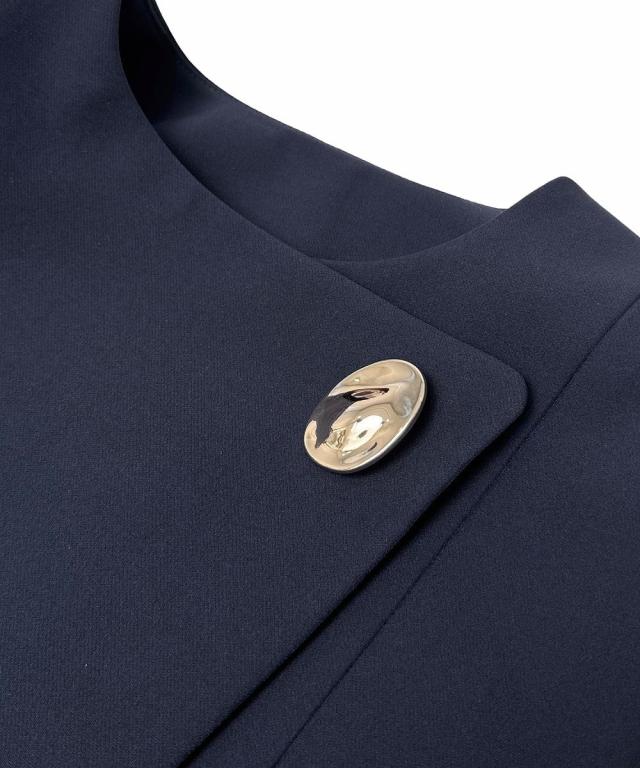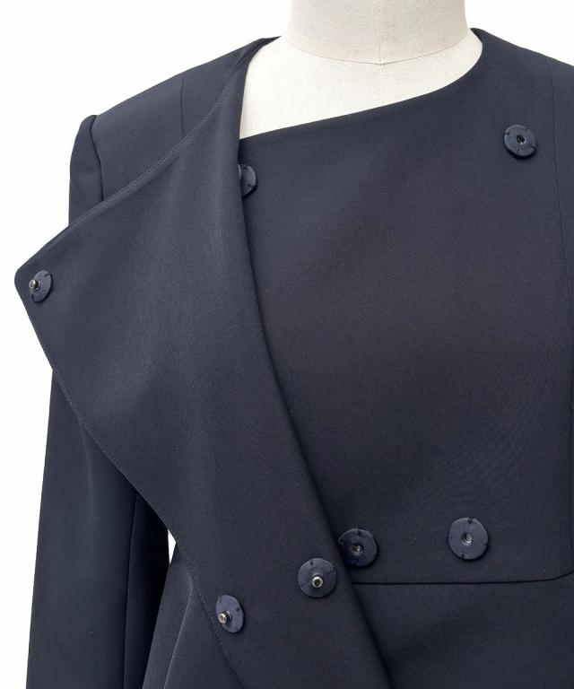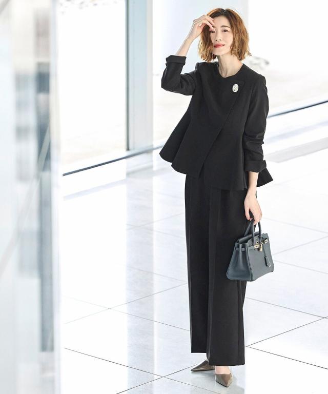 ノーカラーラップペプラムワイドパンツスーツ