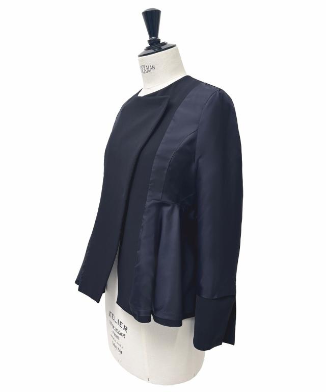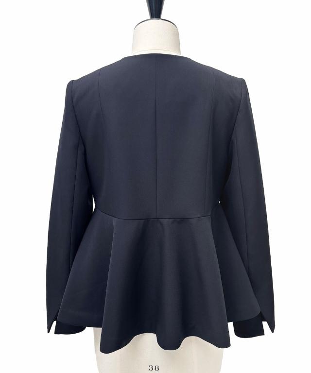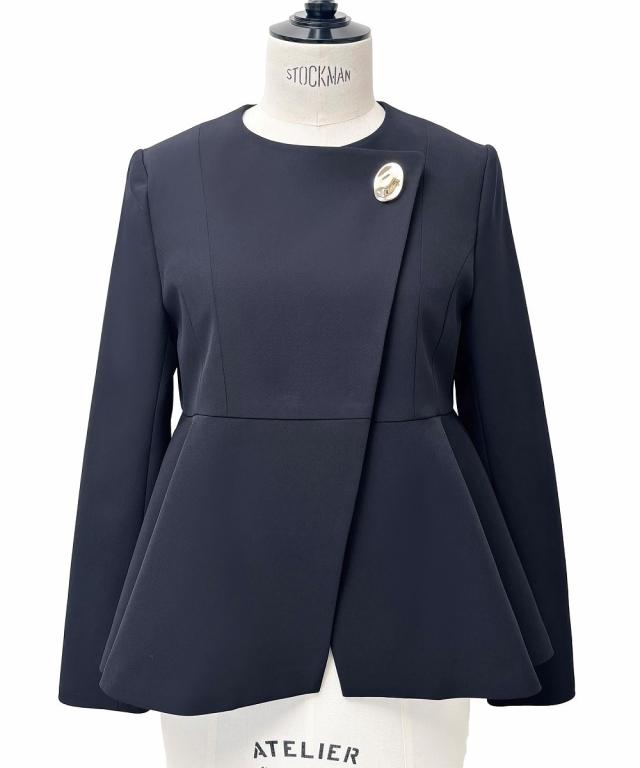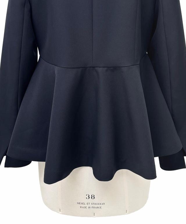 ・アクセント釦とラップデザインが今どきのペプラムジャケット。