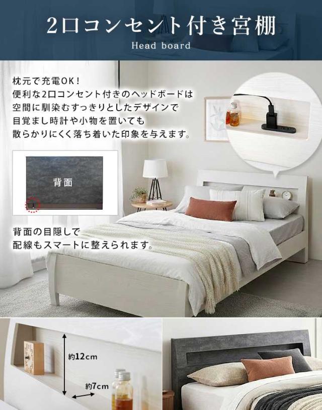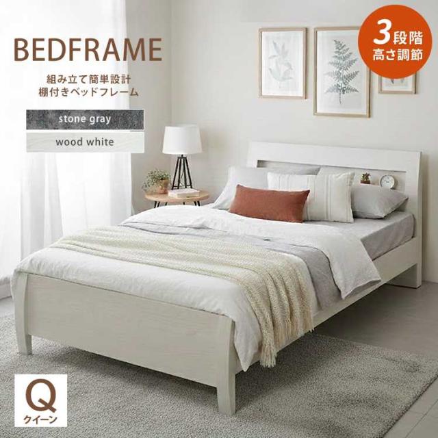 ベッド フレームのみ クィーン 木目調 石目調 おしゃれ 色合い 一人暮らし すのこ 棚付き 宮付き コンセント付き 組立品 高さ調節 FENNEL【フェンネル】ベッドフレーム