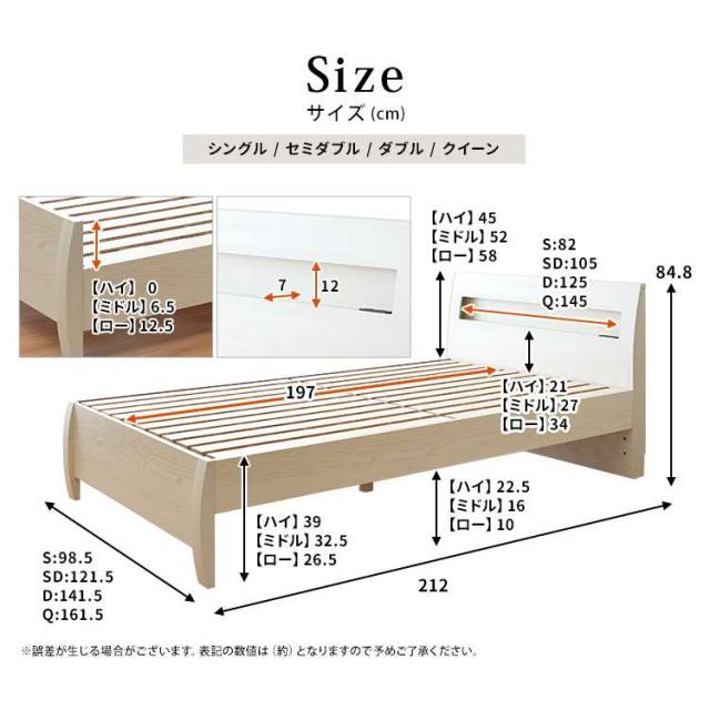 【床板からヘッドボード上部まで】高:45/中:52/低:58