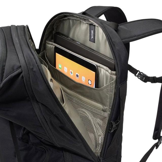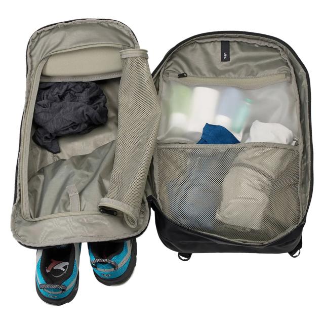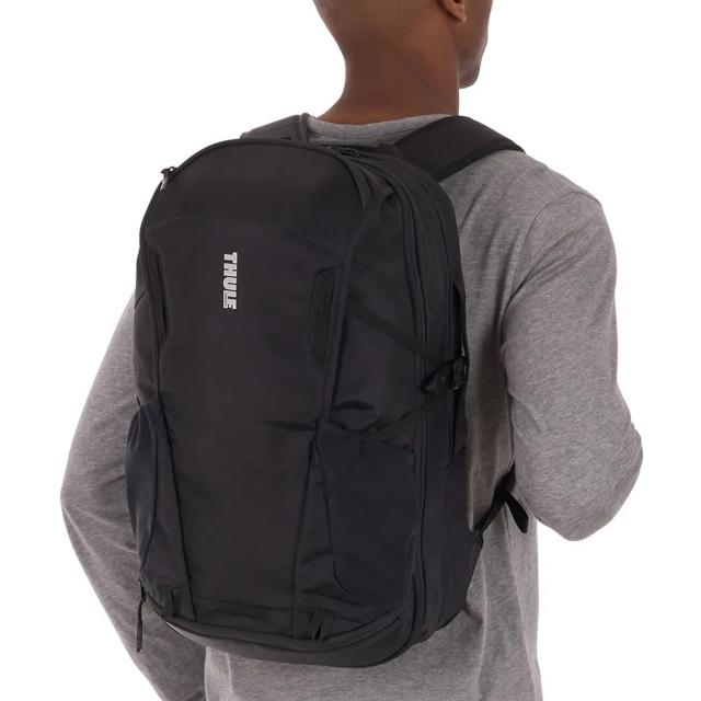 圧倒的な収納力とスマートな整理機能を兼ね備えた、THULEのEnRouteバックパック30Lモデルです。メインコンパートメントは大きく開く「ダッフルスタイル」の開口部を採用しており、衣類や大きな機材のパッキングも容易に行えます。内部には濡れた衣類や汚れ物、液体物の収納に最適な半透明の耐水TPUポケットを備えており、出張先でのジム利用やアクティブな旅行においても他の荷物を汚すことなく管理できます。また、ノートPCやタブレットを素早く取り出せる独立した保護スペースや、壊れやすい小物を守るSafeZoneコンパートメントなど、高機能なポケットが随所に配置されています。30Lという大容量ながら、背負った際の重量バランスを最適化する設計が施されており、多忙なビジネスパーソンや冒険を好むトラベラーにとって理想的なパートナーとなるバックパックです。