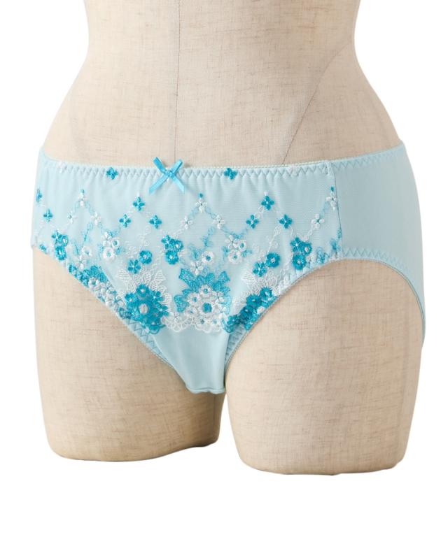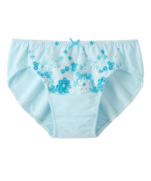 可愛いショーツを実際に履いてみたい、そんな願いをかなえるショーツです。サラッとした綿混率の高いストレッチ生地に花柄の刺しゅうレースをあしらった、デイリーにはけるショーツです。前身のダーツをなくしたかわりに、前身とマチ巾をひろく設定しフィット感よく着用できるショーツを開発しました!前身頃は2重でレースが直接肌に触らず、汚れも目立ちにくいです。是非一度お試しください!※お揃いのブラジャーのお作りはございません、ご了承ください。