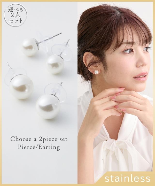 レディース 2点セット貝パール選べるイヤー アクセサリー 選べるピアスorイヤリング 春 夏 秋 冬 かわいい おしゃれ | ピアス/イヤリング | ニッセン nissen