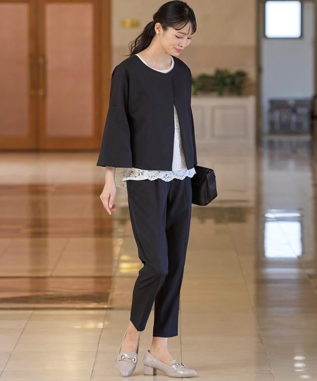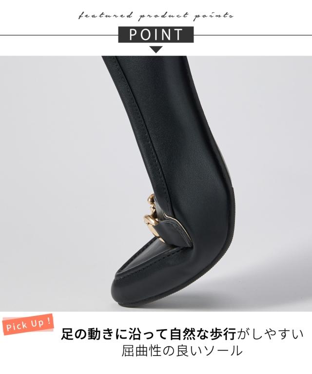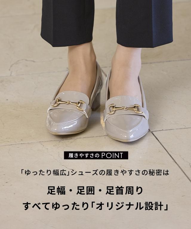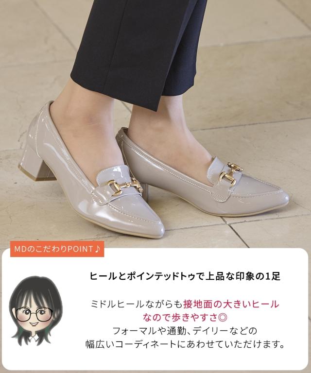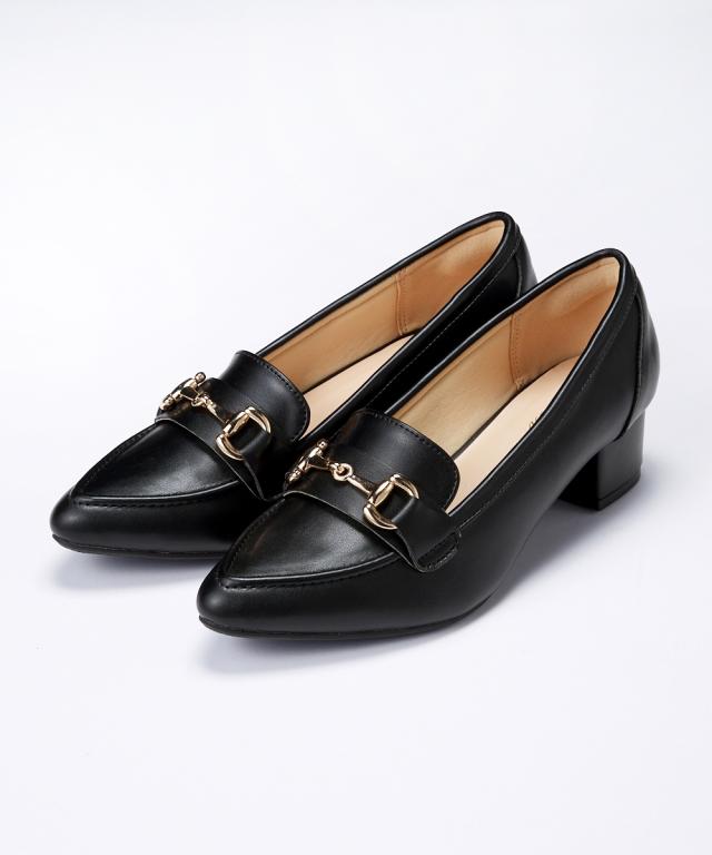 【ゆったり幅広】ビット付ポインテッドトゥローファーパンプス(ワイズ4E)