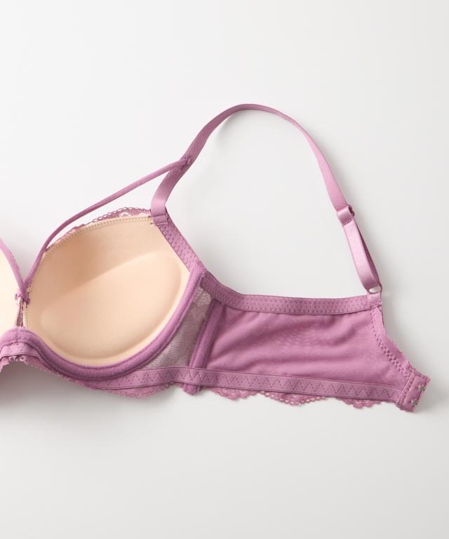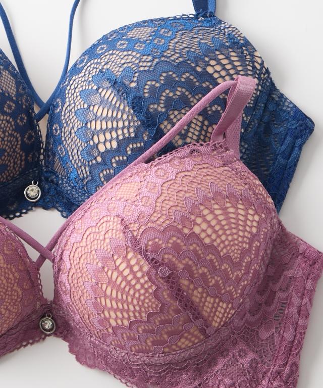 クロスストリング×総レースデザインでセクシーに胸元を彩るブラセット。 脇高×ソフトワイヤ仕様で気になる脇肉もスッキリ&体に優しくフィット 下厚モールドカップで美しいバストラインヘ。 詳しいショーツサイズについては詳細画像内サイズ表を参考にお持ちのショーツと比較してみてください。