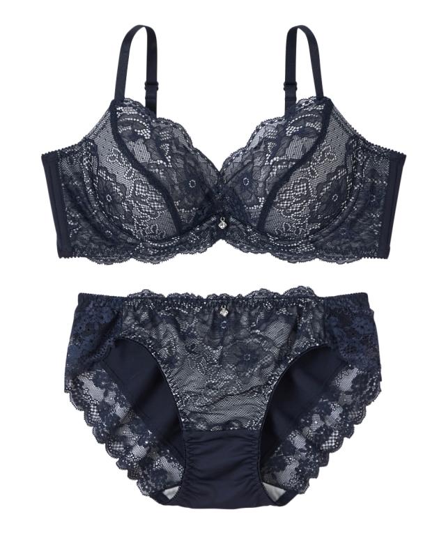レースの透け感が上品なブラセット ショーツは足口レースデザインでタイトなボトムスも安心 脇高仕様で気になる脇肉もすっきりシルエット。 下厚モールドカップで美しいバストラインヘ。 詳しいショーツサイズについては詳細画像内サイズ表を参考にお持ちのショーツと比較してみてください。