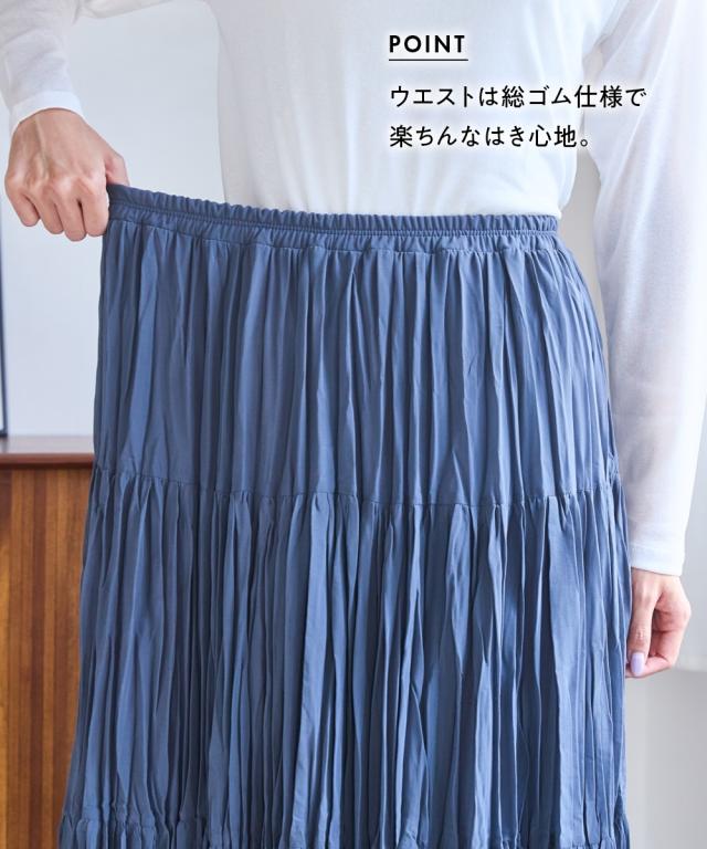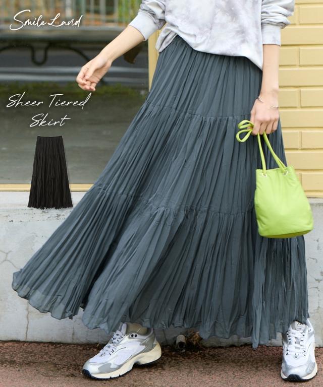 ロングスカート レディース シアー プリーツ ティアード スカート ゆったり ヒップ 春 夏 秋 冬 マキシスカート 長め ロンスカ | 8L/10L | ニッセン nissen